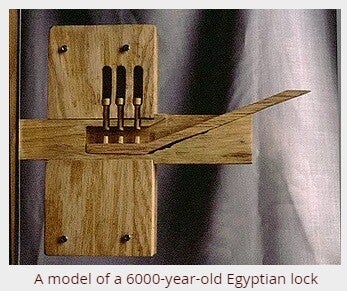 ➜ Invention de la serrure à goupilles en bois (principe ancêtre des serrures modernes).